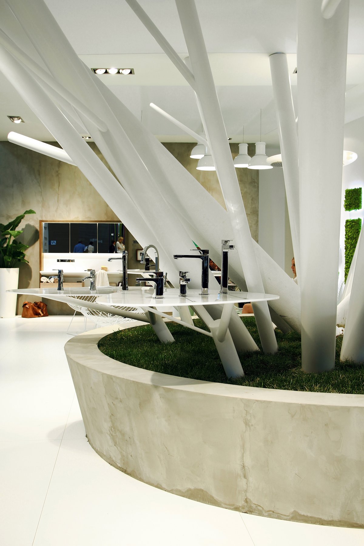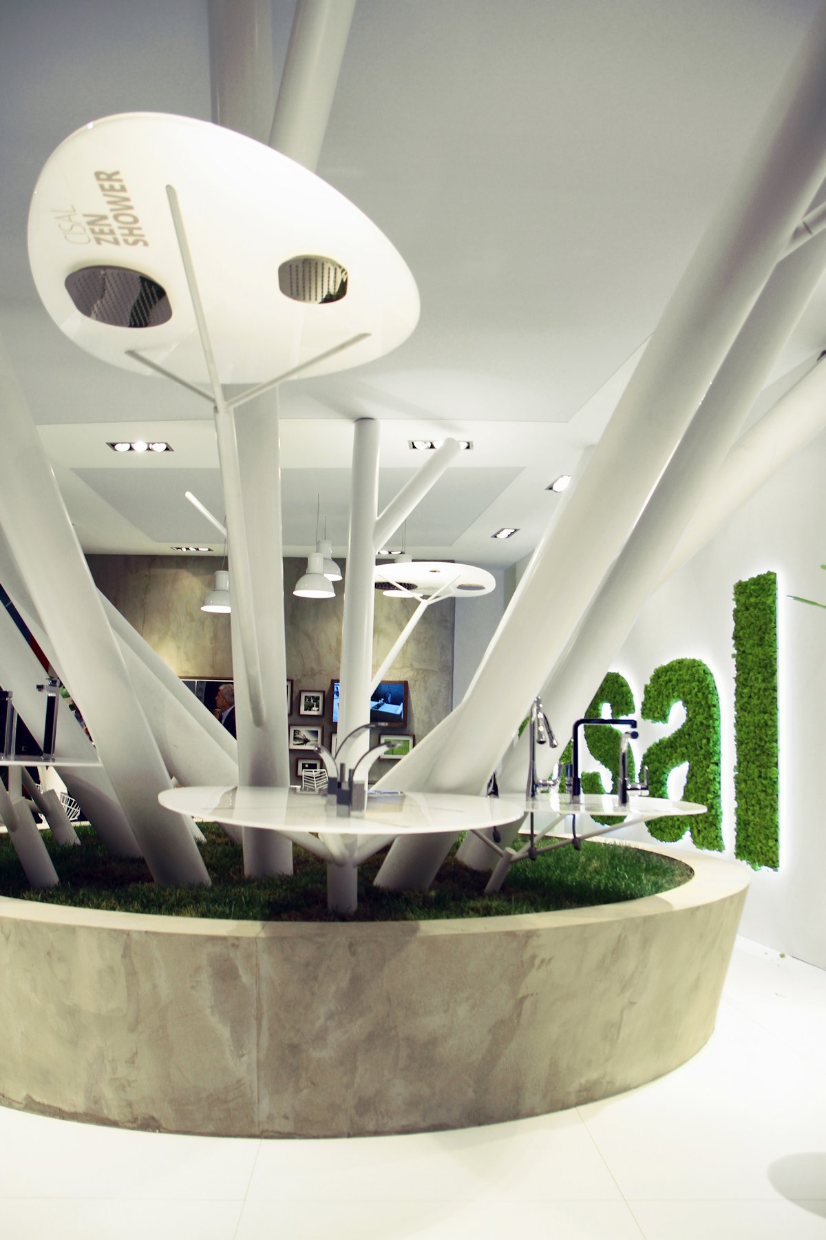 Inspiration natural forms, materials and aesthetics, therefore, in addition to the company logo-covered bellows reflected in the airframe itself by the other elements that allow the creation of a stylized natural objects, intended for the presentation of Cisal faucets. These core elements complement Frame Collection, first introduced just over Cersaie 2013.