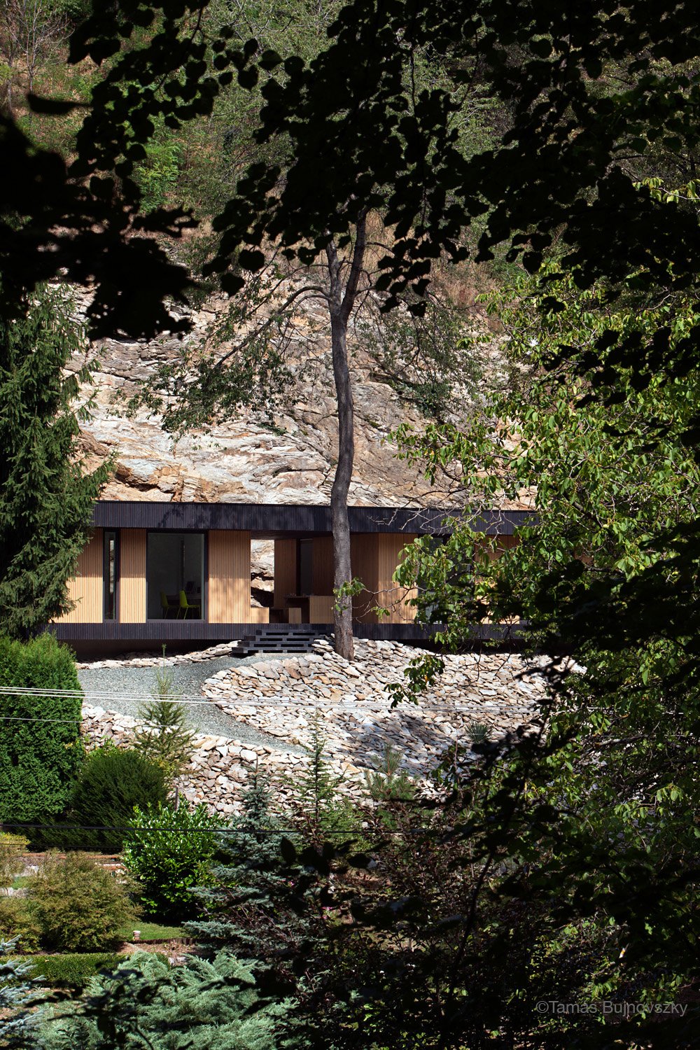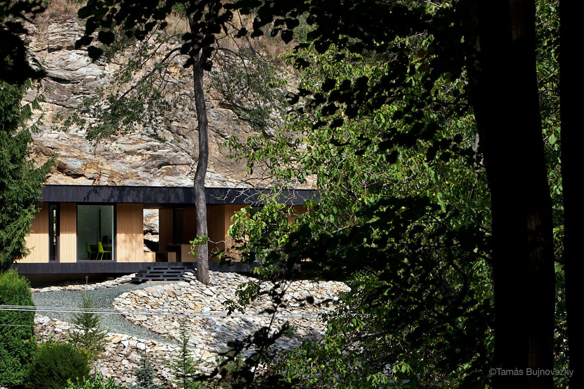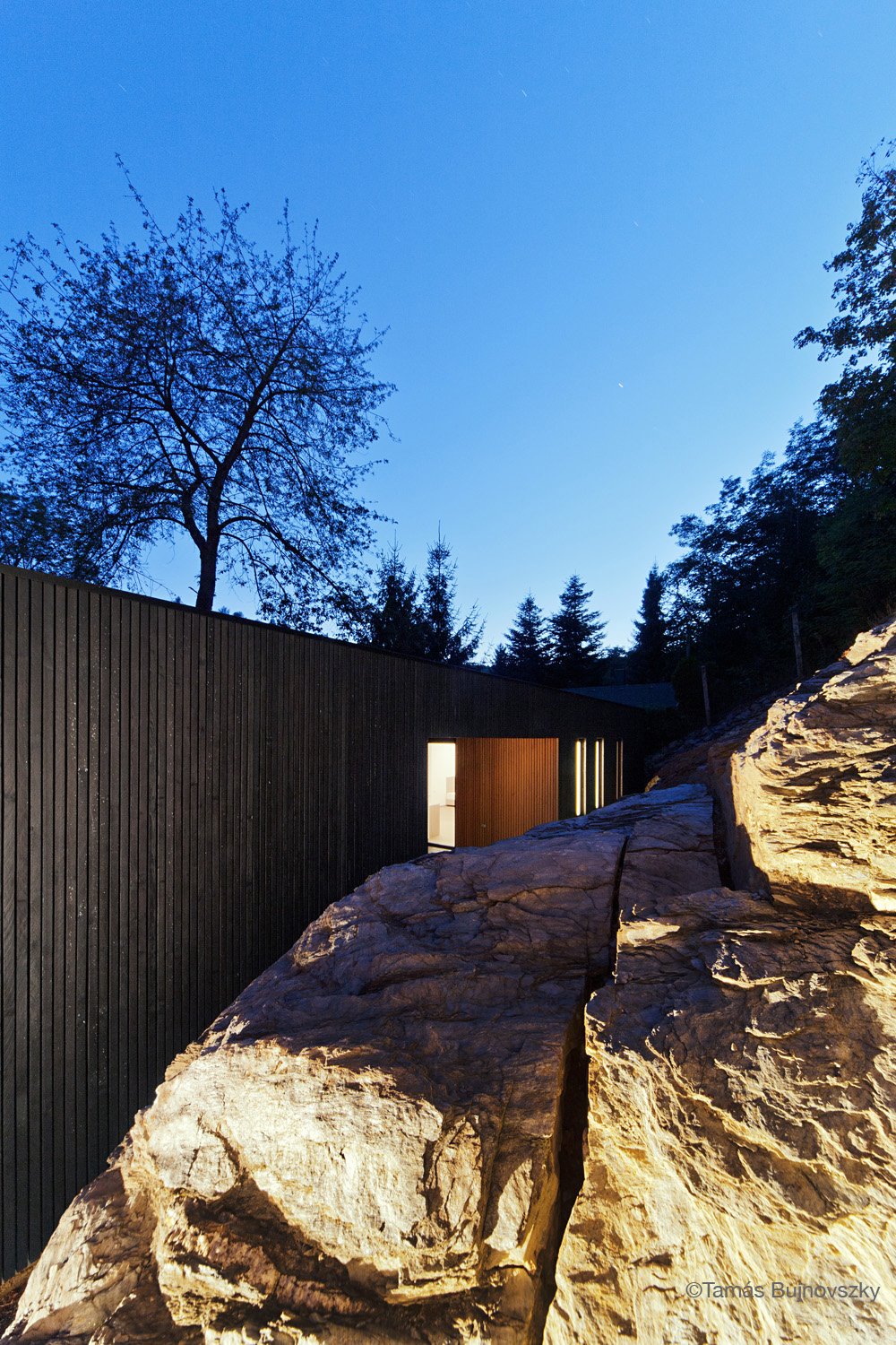 Focusing on sculptural cliffs and friendly hillside woods, Hideg-ház is an unusual object in the landscape of the outskirts of Koszeg, a charming historical town in Hungary.