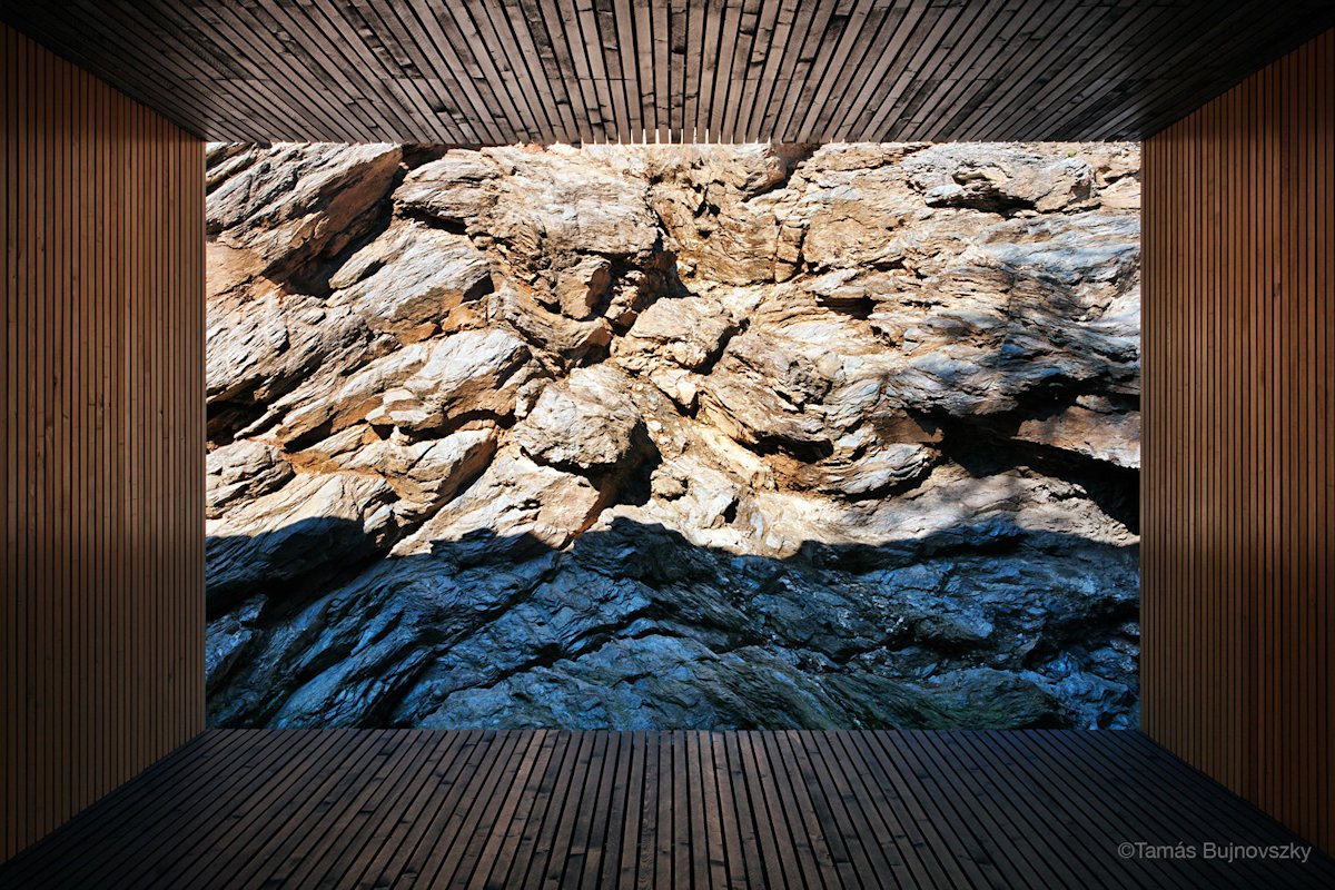 Mr. Hideg and his wife spent 3 years on site to build this precisely detailed and custom-tailored house by hand. They carried out almost every phase of construction from cleaning the cliffs to building custom furniture. Their devotion and insistent enthusiasm had key importance along the process of design and construction of the holiday home.