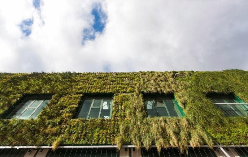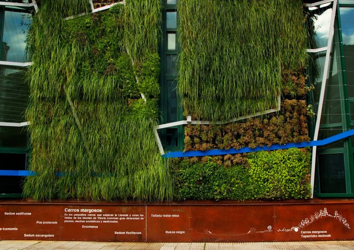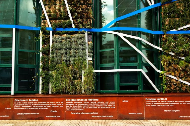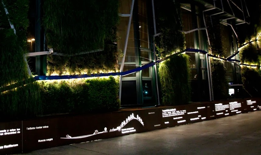The vertical garde has a total area of 1492m2, of which 1000m2 are an hydroponic vertical garden system f + p and 492m2 are made of climbing plants covering the windows. We have been used more than 33,000 native plants of different varieties from Alava and the Basque Country .